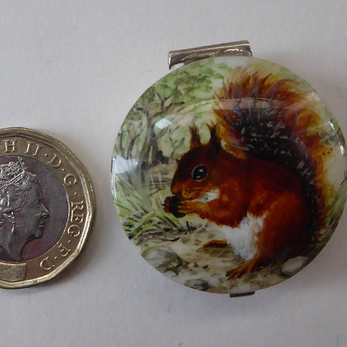Cute Vintage Hallmarked SOLID SILVER Trinket Box. Hand-Painted Enamels on Lid Featuring an Image of a RED Squirrel