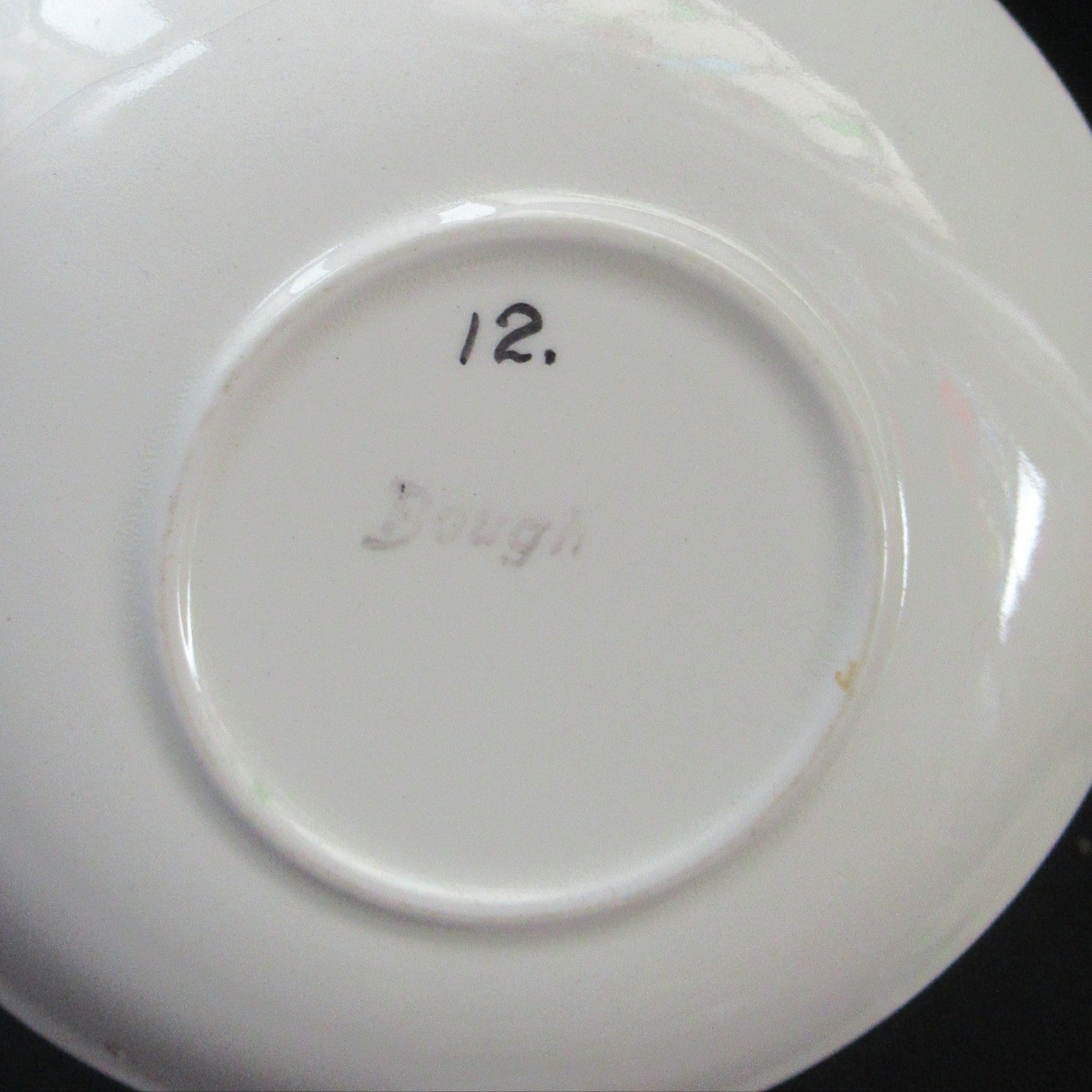 The decoration is hand-painted by Elizabeth Amour (her monogram and creation details are all on the base).