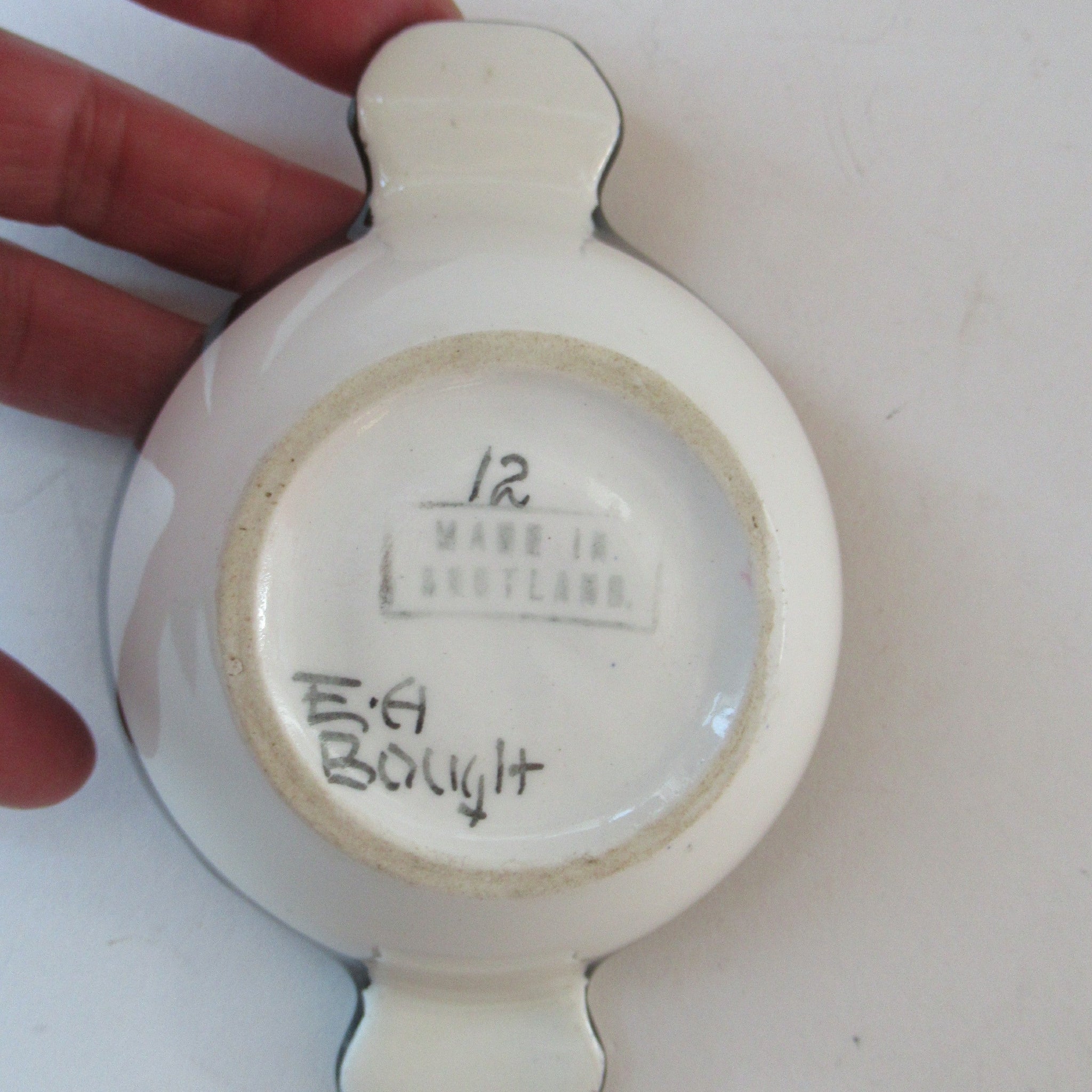 The decoration is painted onto a blank. It was common in the early 20th century for small Scottish potteries to have white ceramics supplied and decorators would paint the decoration on the blanks.