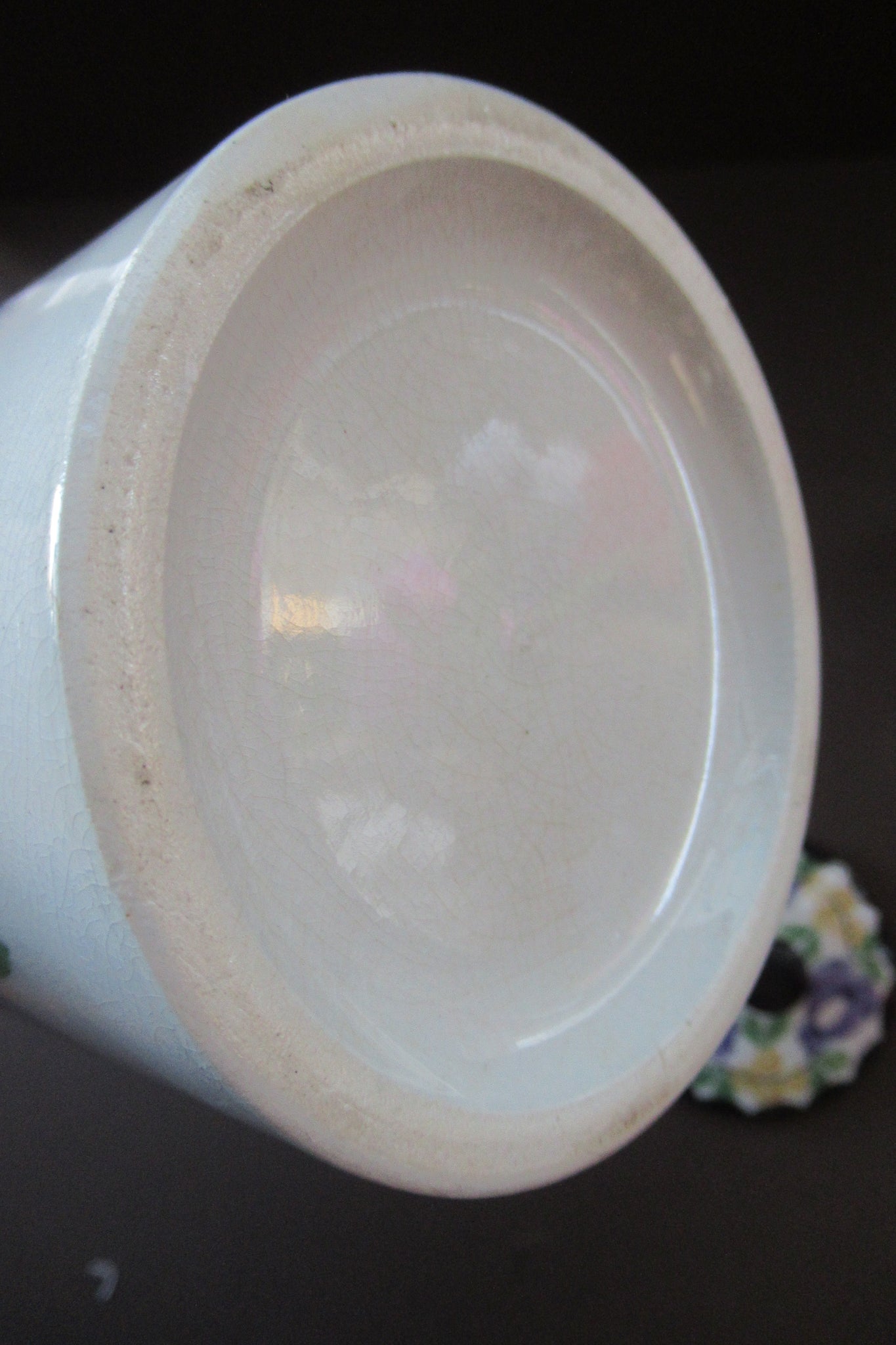 It is in good antique condition with no chips or cracks. There is a very tiny area of craquelure in the base - but really that is the only issue - which is nothing really for a pot of this age.