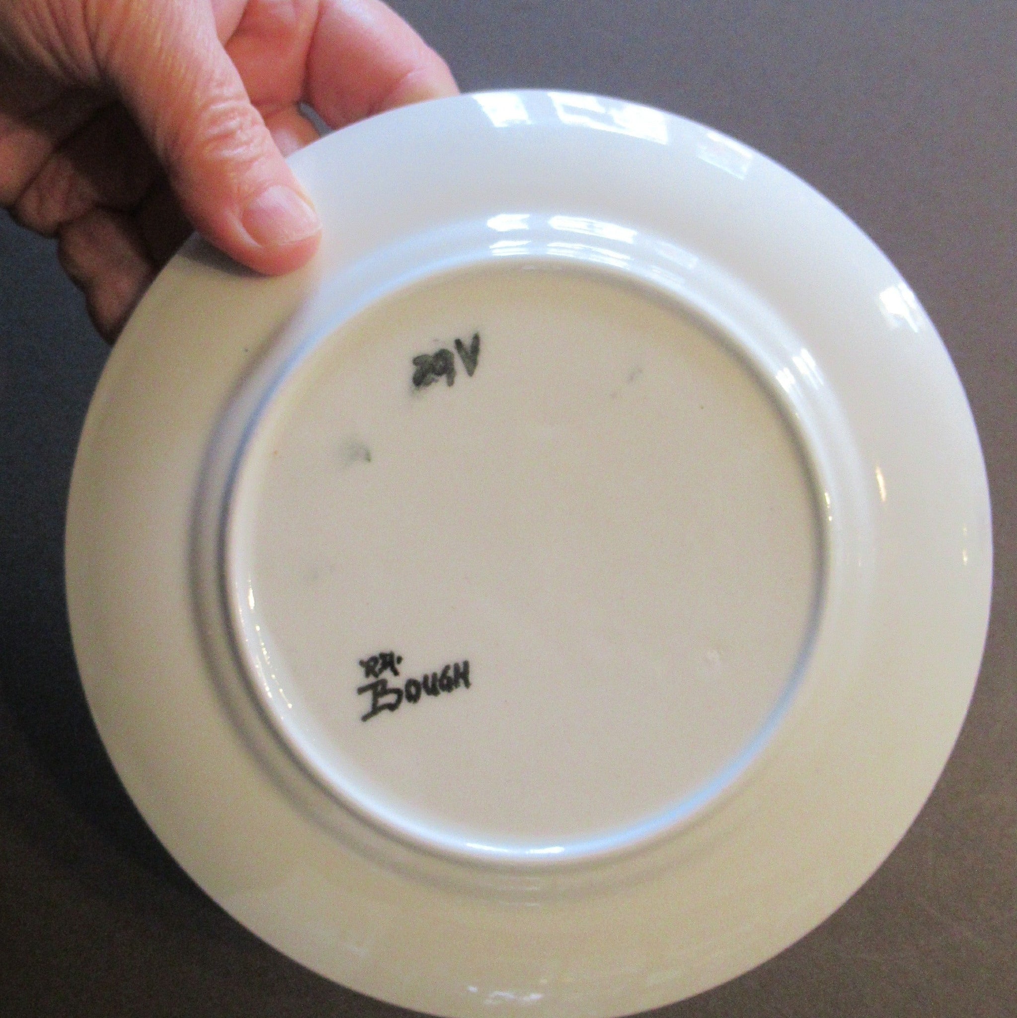 Bough Pottery was founded by Elizabeth and Richard Amour in the 1920s. They specialized in decorating blanks - which they bought in from pottery companies in England and Scotland (many from Maling Pottery, Newcastle).