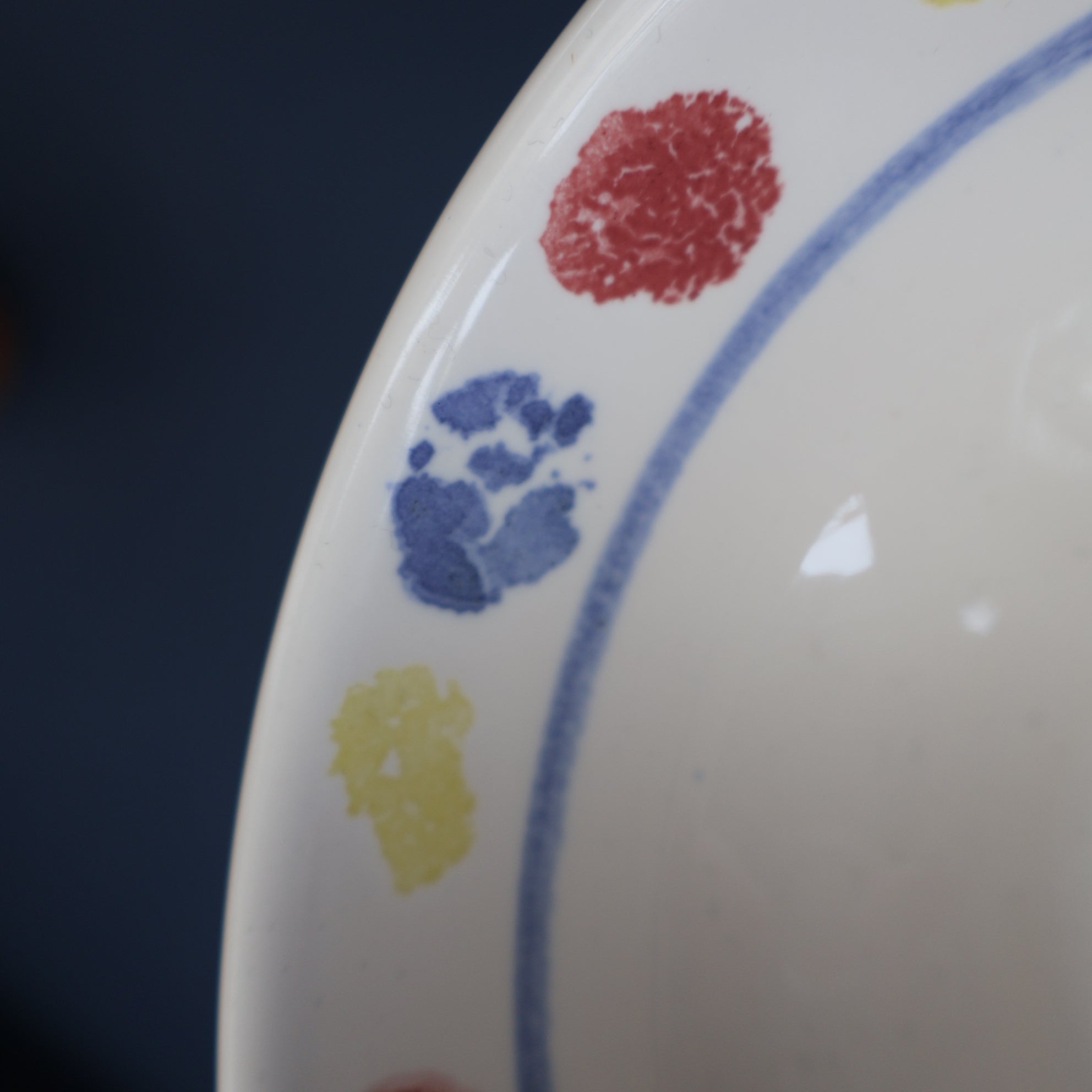 Anyway, another "New Town", rare piece. The glaze is a simple white on and the decoration is applied spongeware large dots, all hand applied - as some are smudged.
