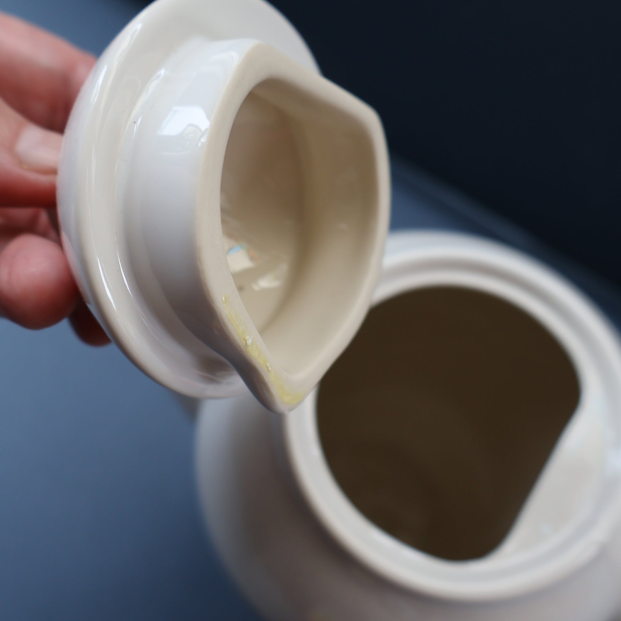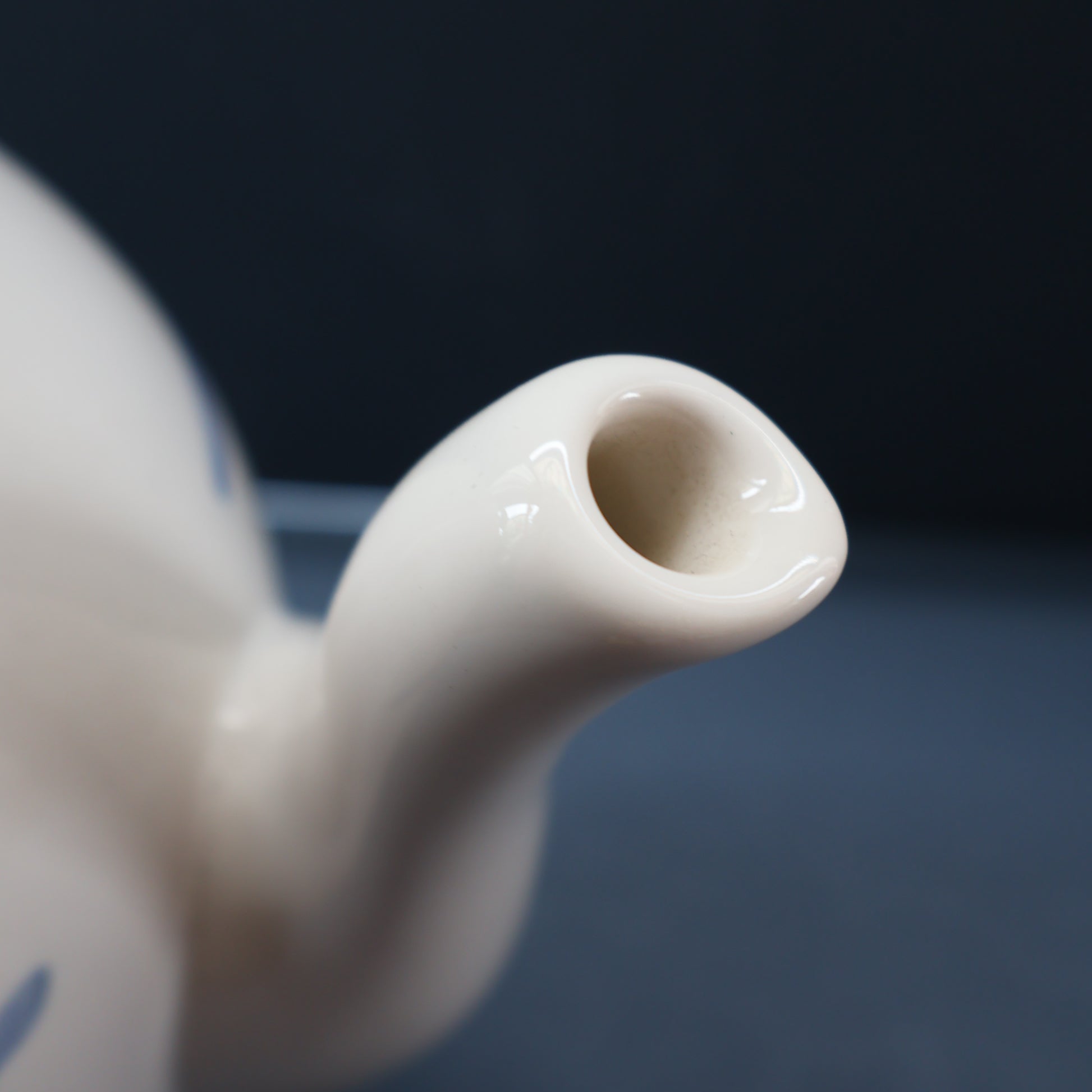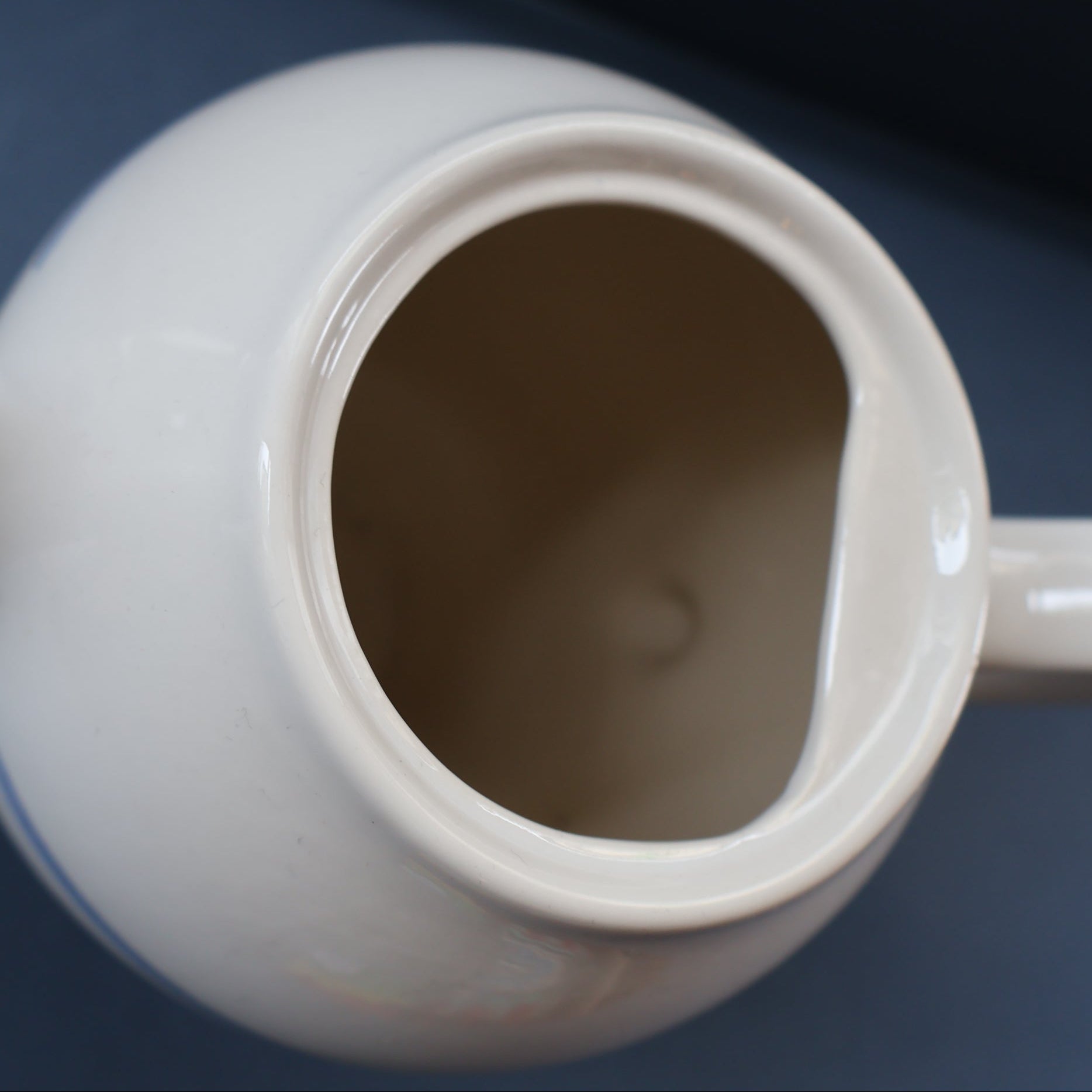 Anyway, this substantial ceramic coffee pot seems to be a rare piece and these do not seem to have been produced in large numbers. The glaze is a simple white on and the decoration is applied spongeware large dots, all hand applied - as some are smudged. The pattern is called "New Town".