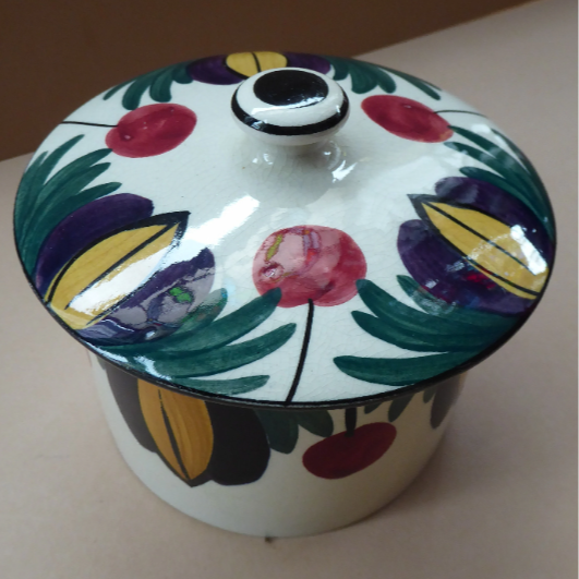 It is a fine piece of Scottish studio pottery - and you can clearly see the influence of Heron's earlier Wemyss Wares in this design.