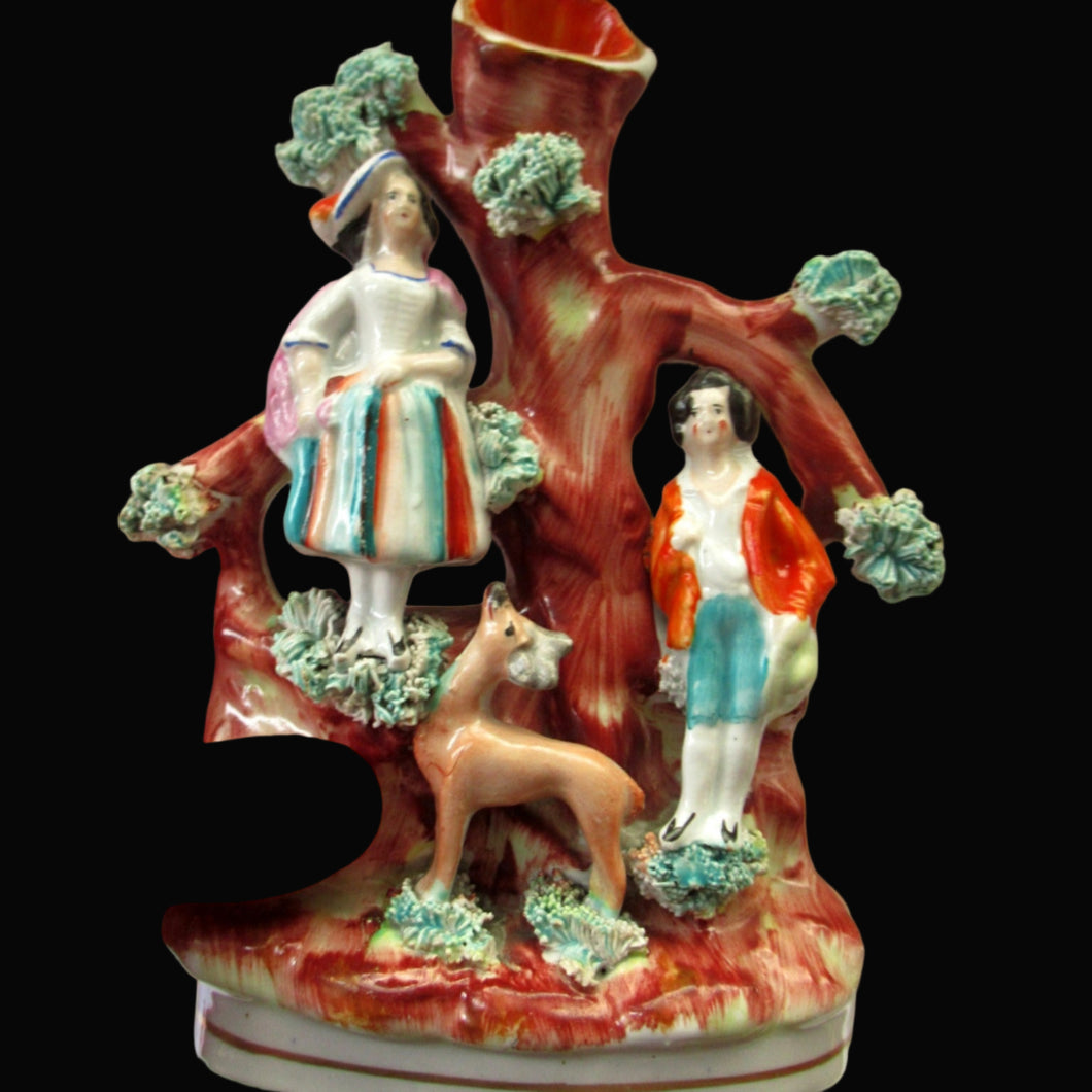 This is a cute little miniature Staffordshire figurine / spill vase.