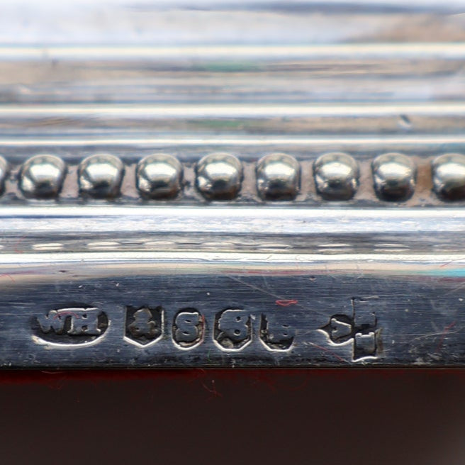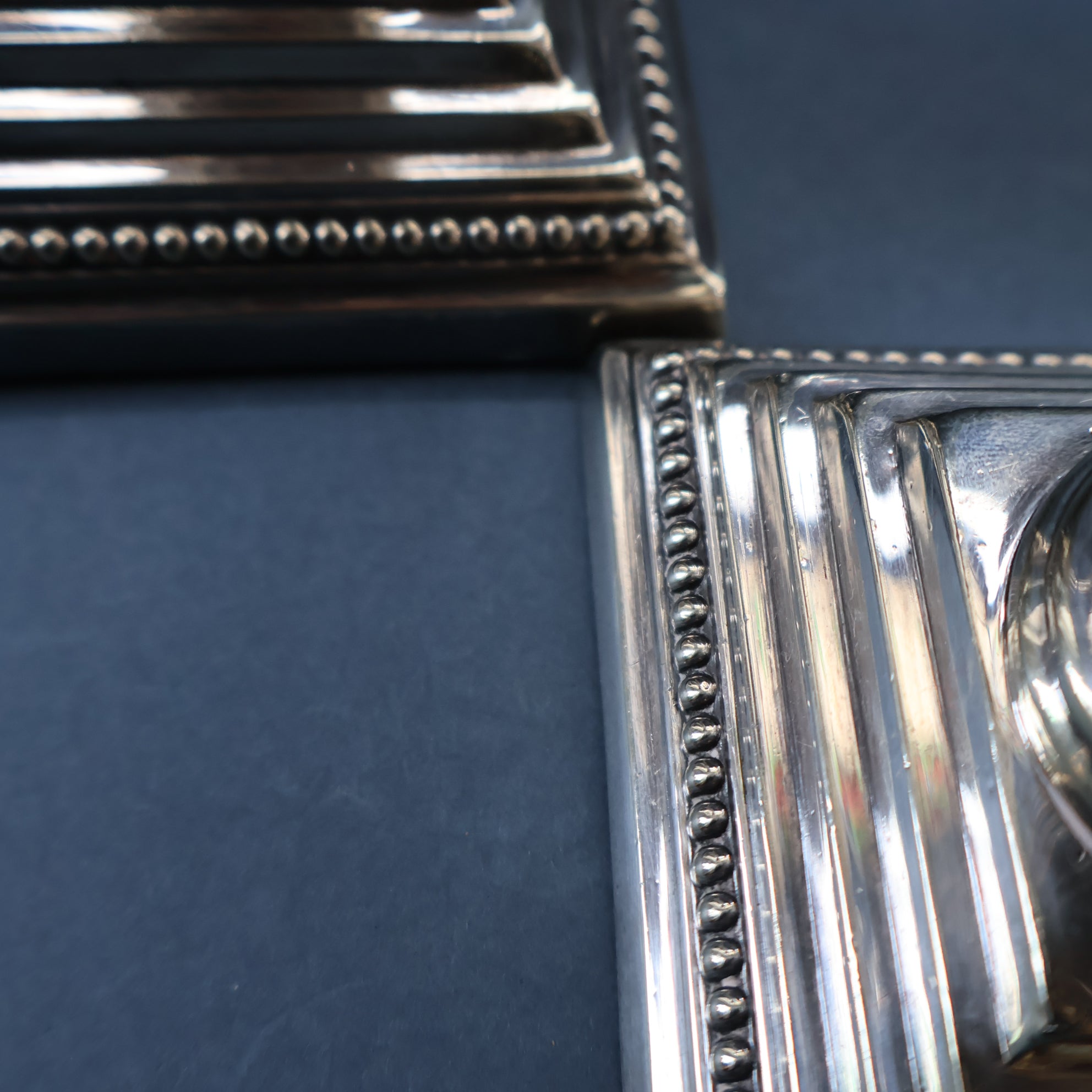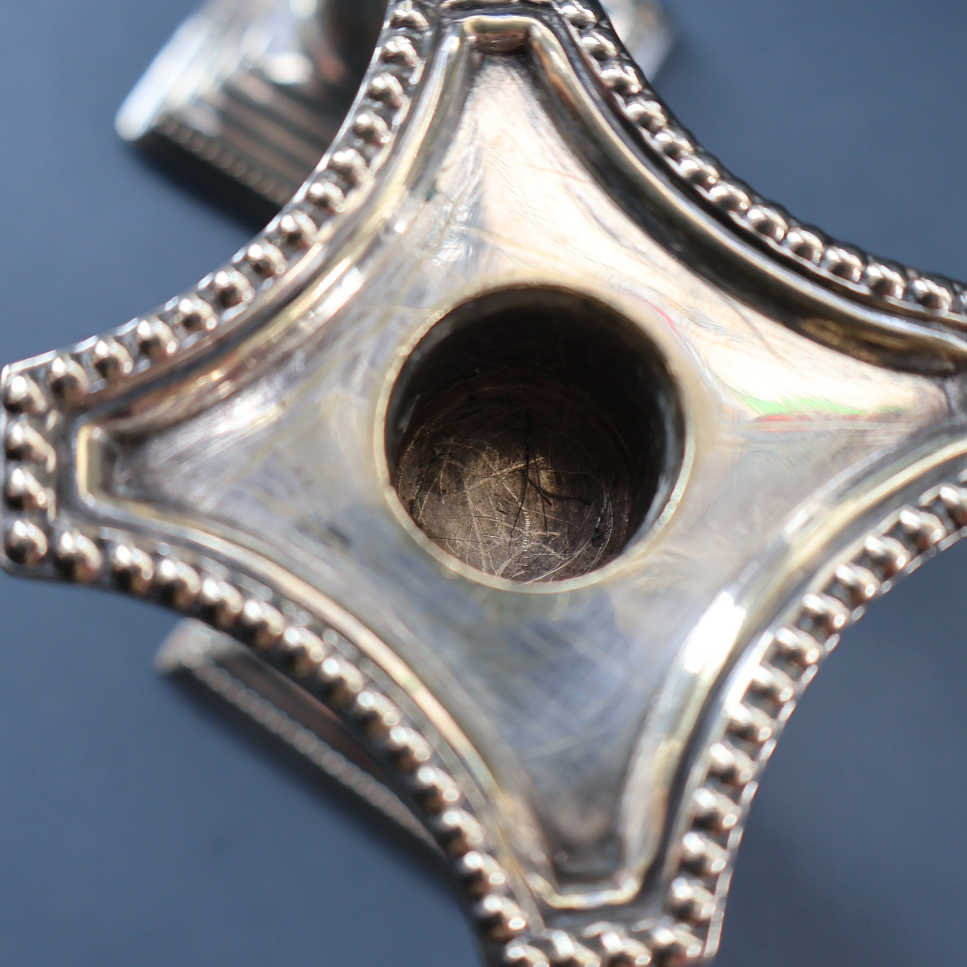 The are a very good quality pair - made by the prestigious Sheffield silversmiths, William Hutton & Sons. They have their mark "WH & Sons" on the side of edge plinth. These smaller size are very handy for the dining table and would be great for your Christmas table.