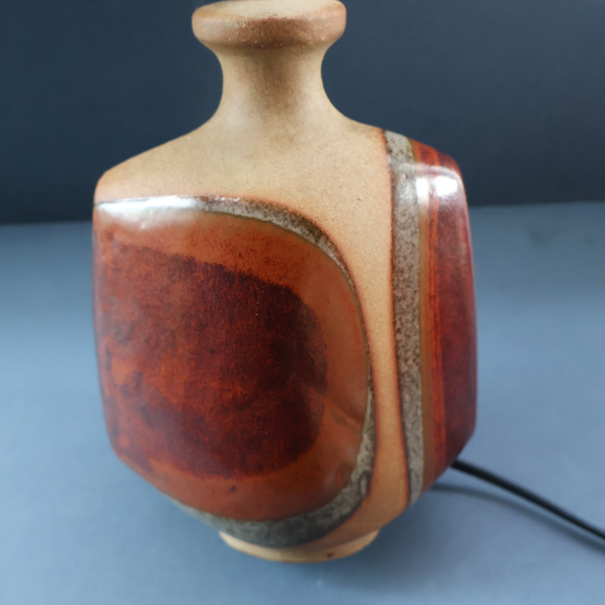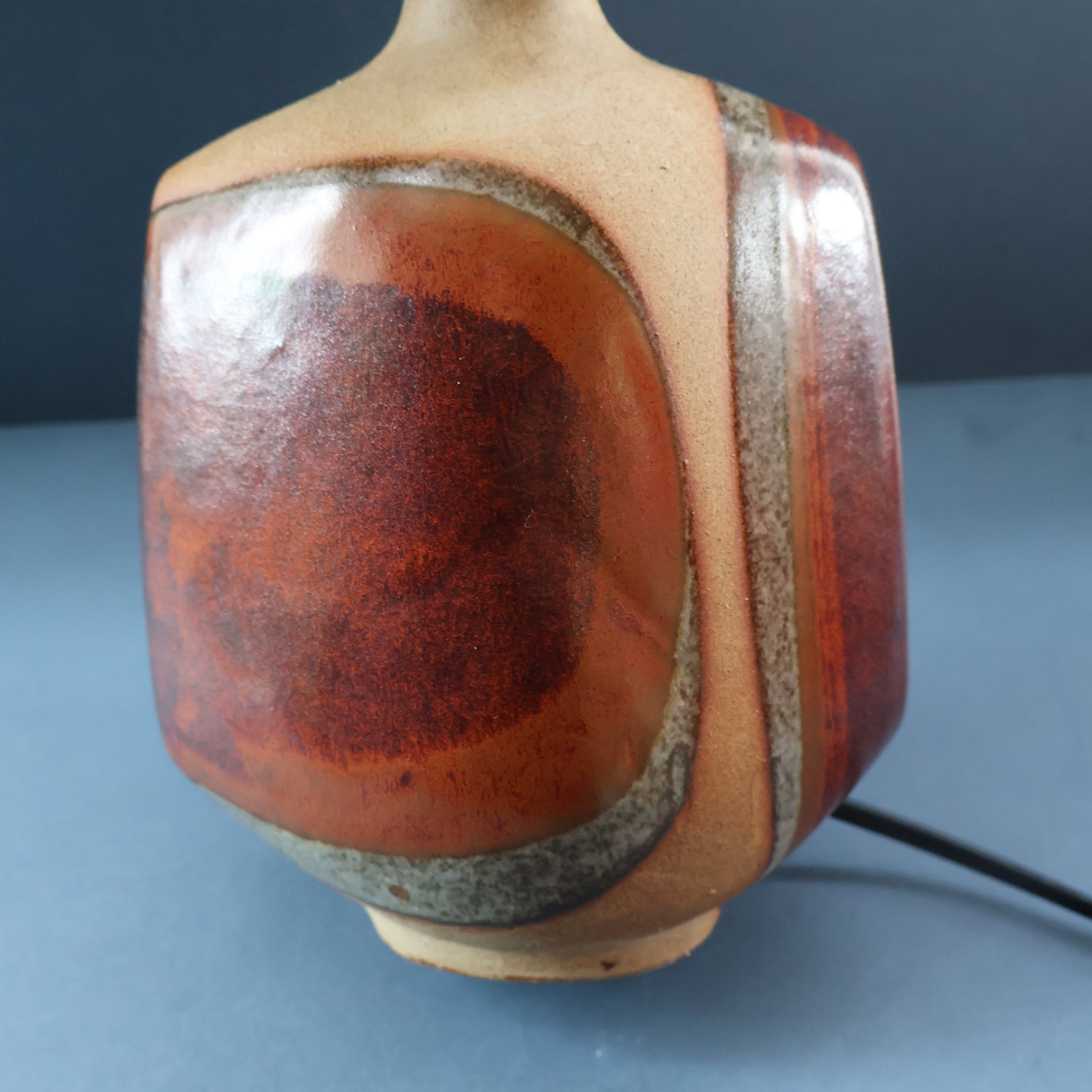 This is a very collectable sculptural lamp made by Peter Ellery at his Tremaen Studio Pottery in Newlyn, Cornwall, established in 1965. These pieces were made by him between 1967 and 1974.