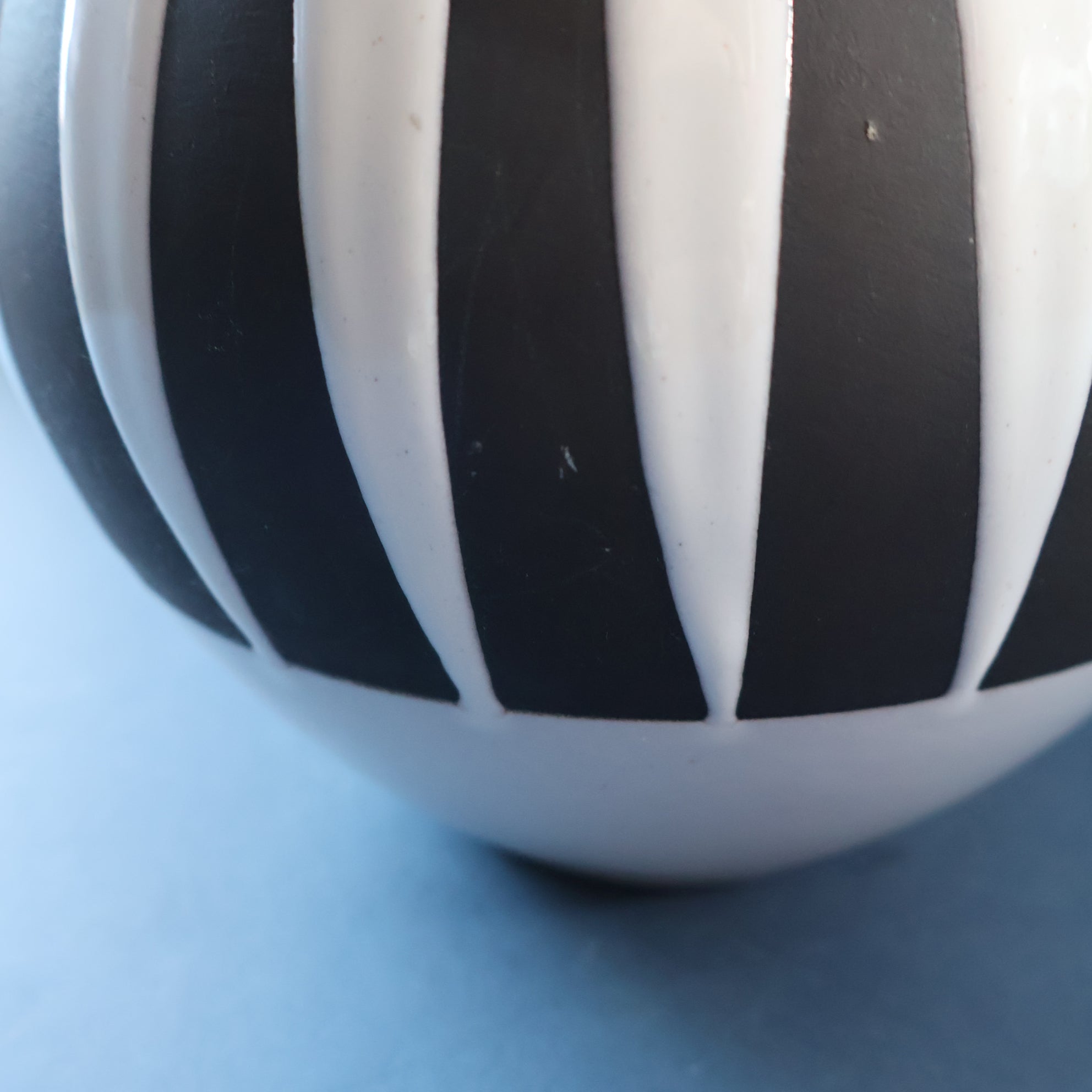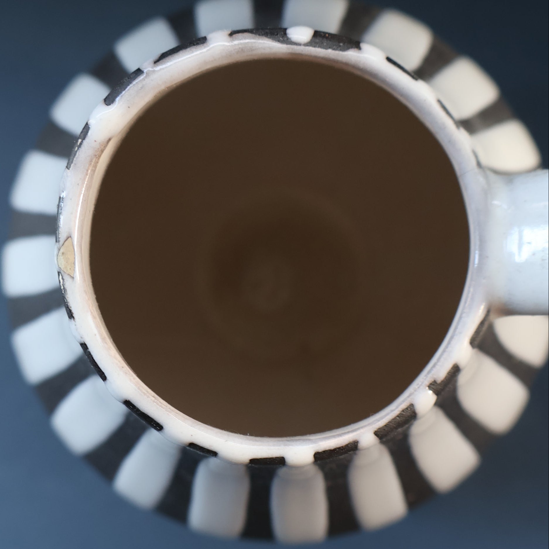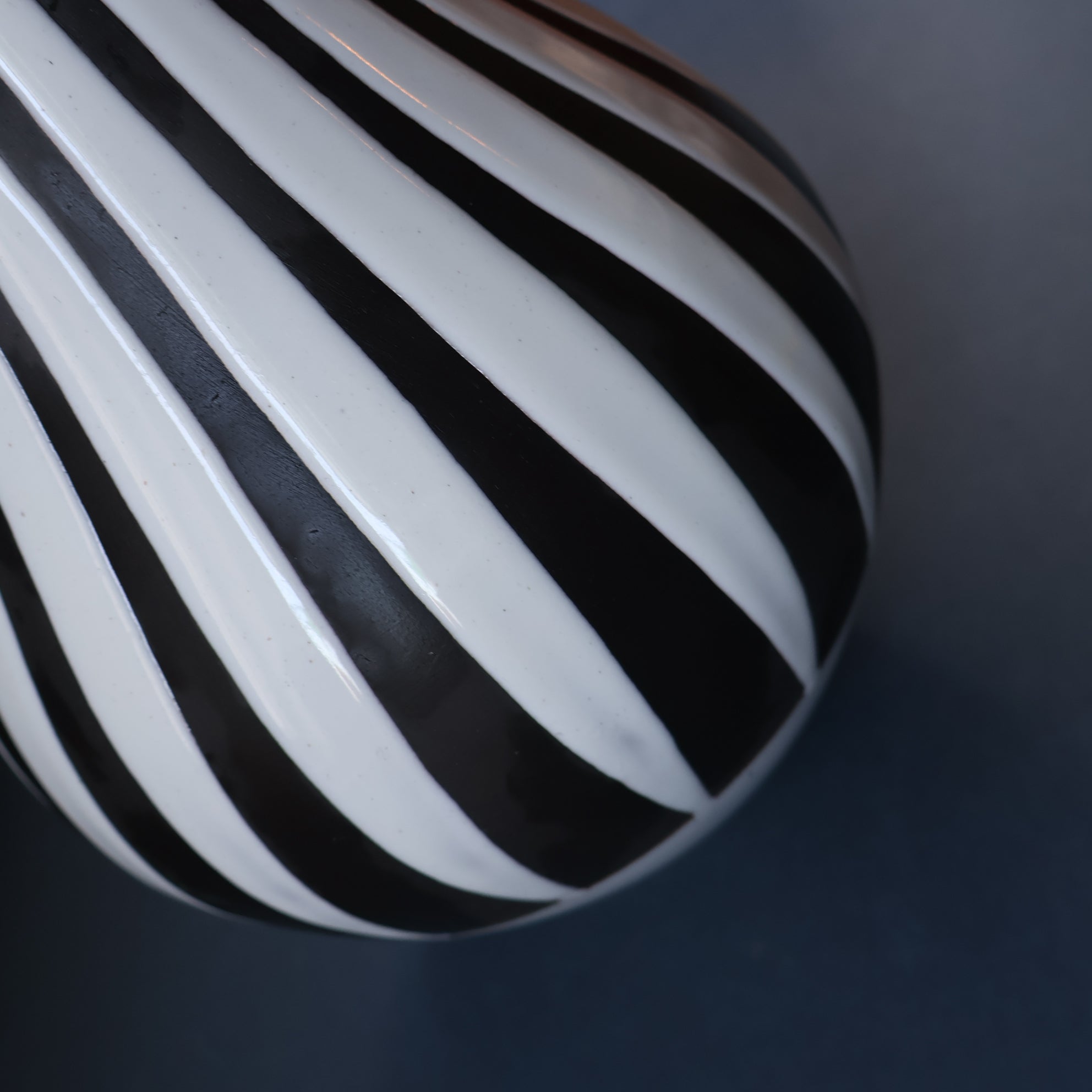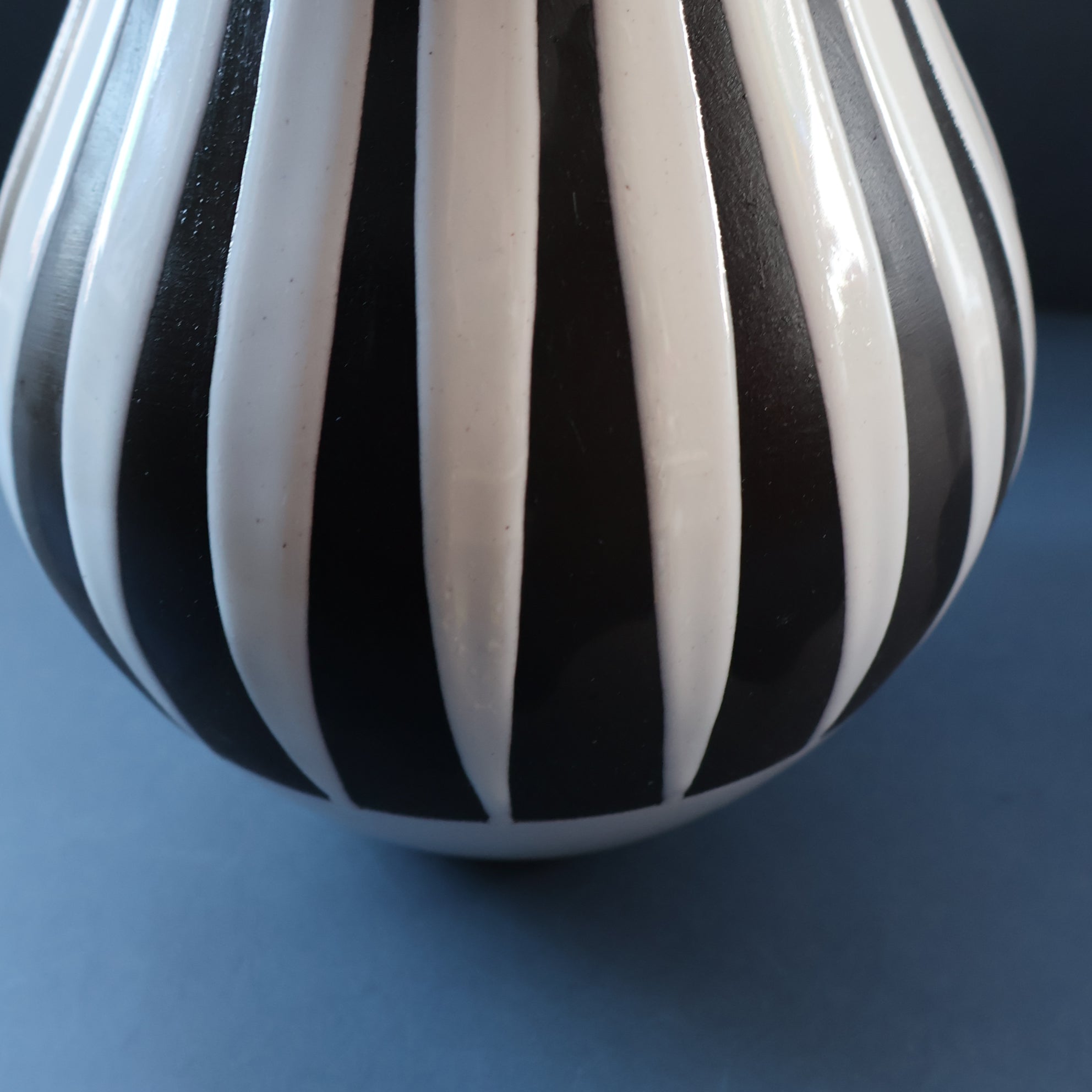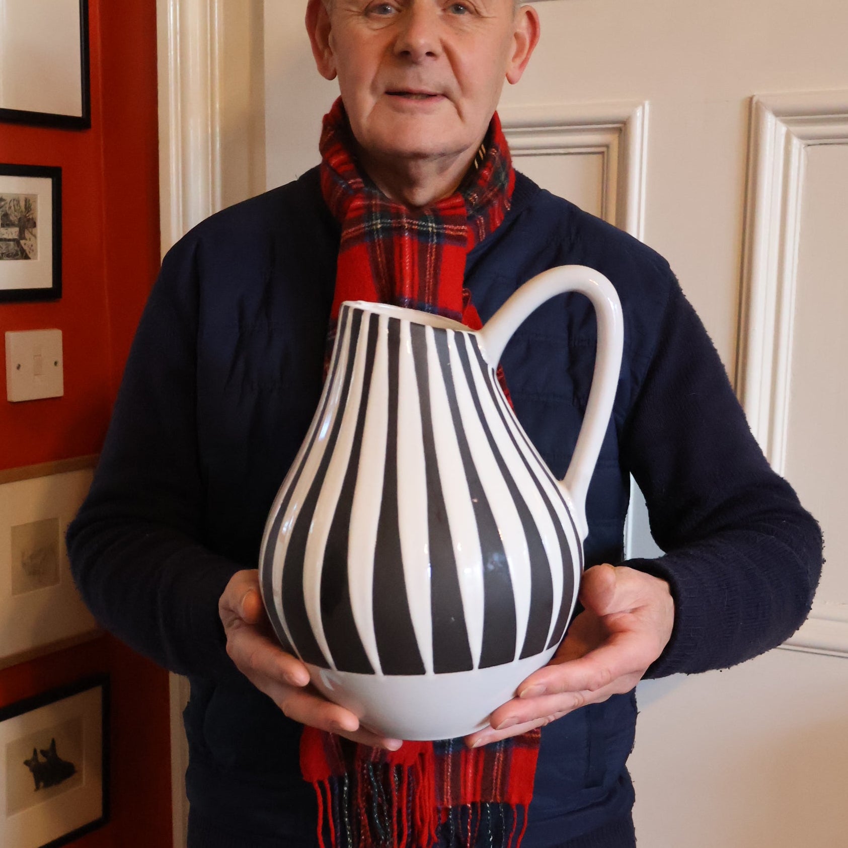 My large pitcher or vase has vertical matt black stripes. The rest of the vase is a glossy white glaze.