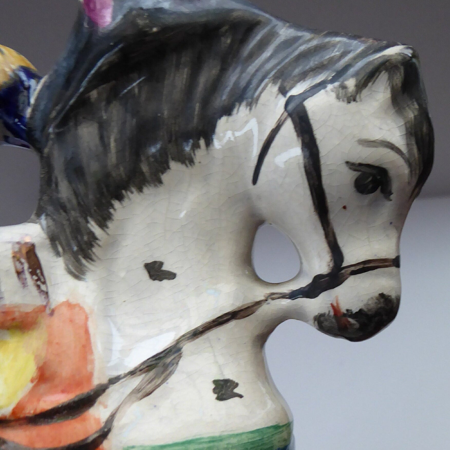 The horses' legs are very fine - sadly, one has a hairline crack to the ankle, as photographed. There is a little craquelure of the base of one figure - but generally a lovely pair with hardly any condition issues - priced to take the hairline to the little horse leg into consideration.