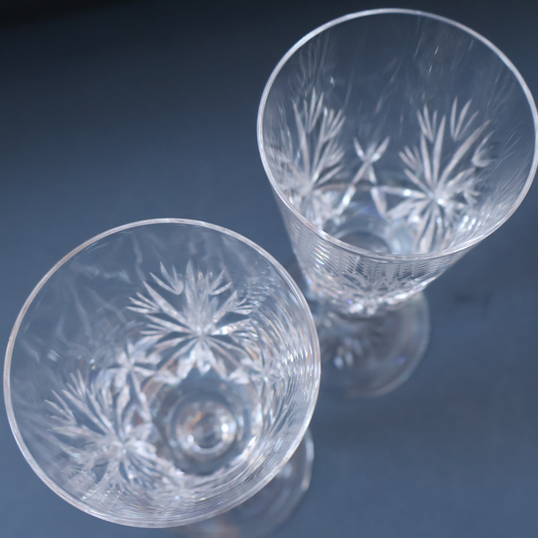 They are a matching set of four and are in perfect condition with no damage. They have the older etched signature on the base of each glass, as photographed. So dating to around the 1960s. I am listing these at a fair price of £35 each pair - so £70 grand total.