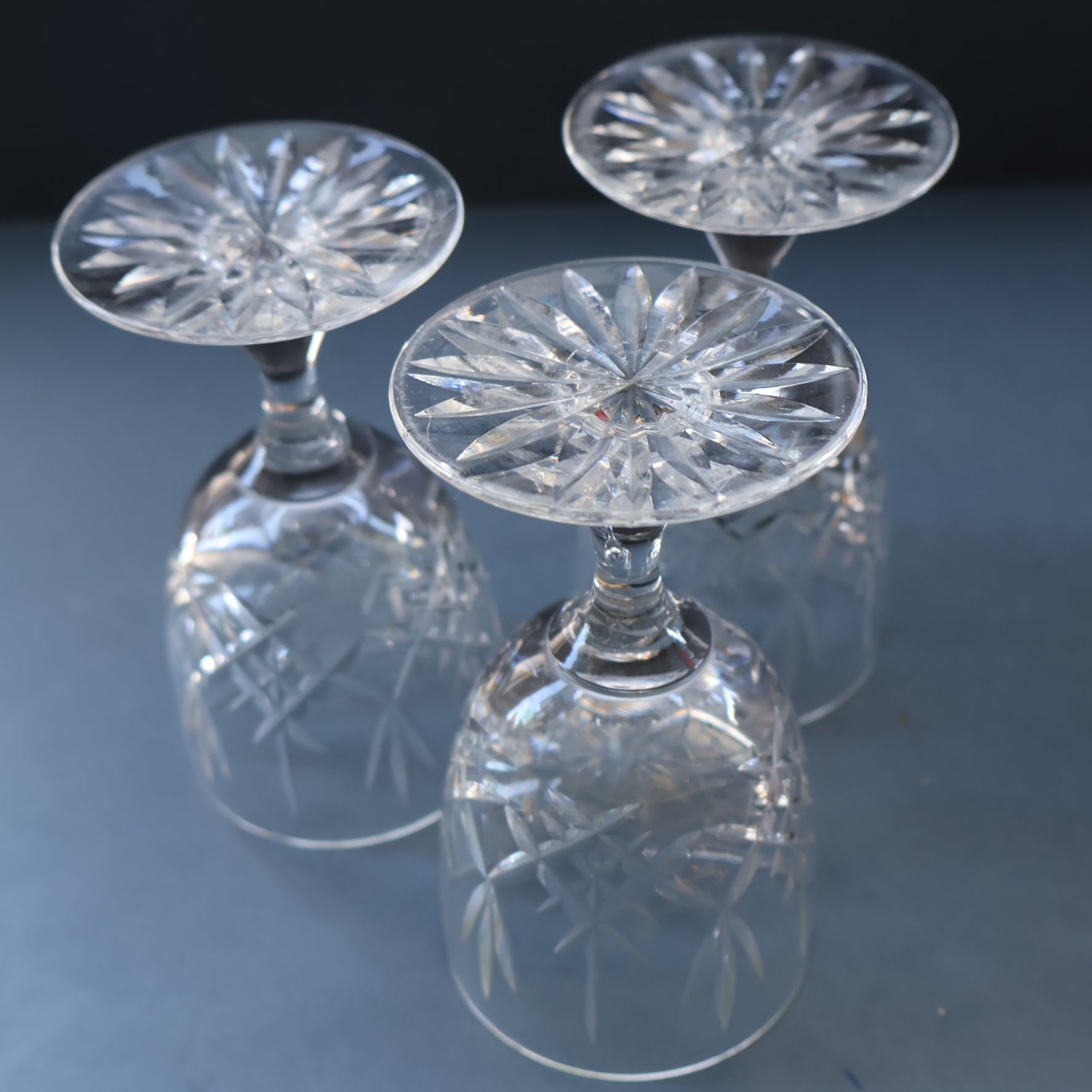 On offer here are three vintage 1980s Edinburgh Crystal small white wine glasses.