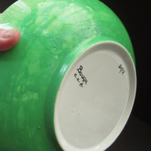 The base of the bowl is painted on the outside with broadly painted thick peppermint green glazes - they are quickly applied and there is texture to the paintwork and some runs to the glaze. It shows clearly that this bowl has been hand-decorated. Any runs and texture to the exterior of the bowl is only really obvious when it is turned over and held in bright raking light.