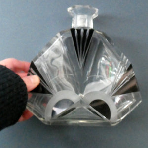 It is a nice large size and in good condition with no chips, cracks or staining to the glass. The black enamel decoration is totally original to the decanter and also without issues.