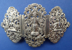This is a highly ornate and decorative old Anglo-Indian silver belt buckle.