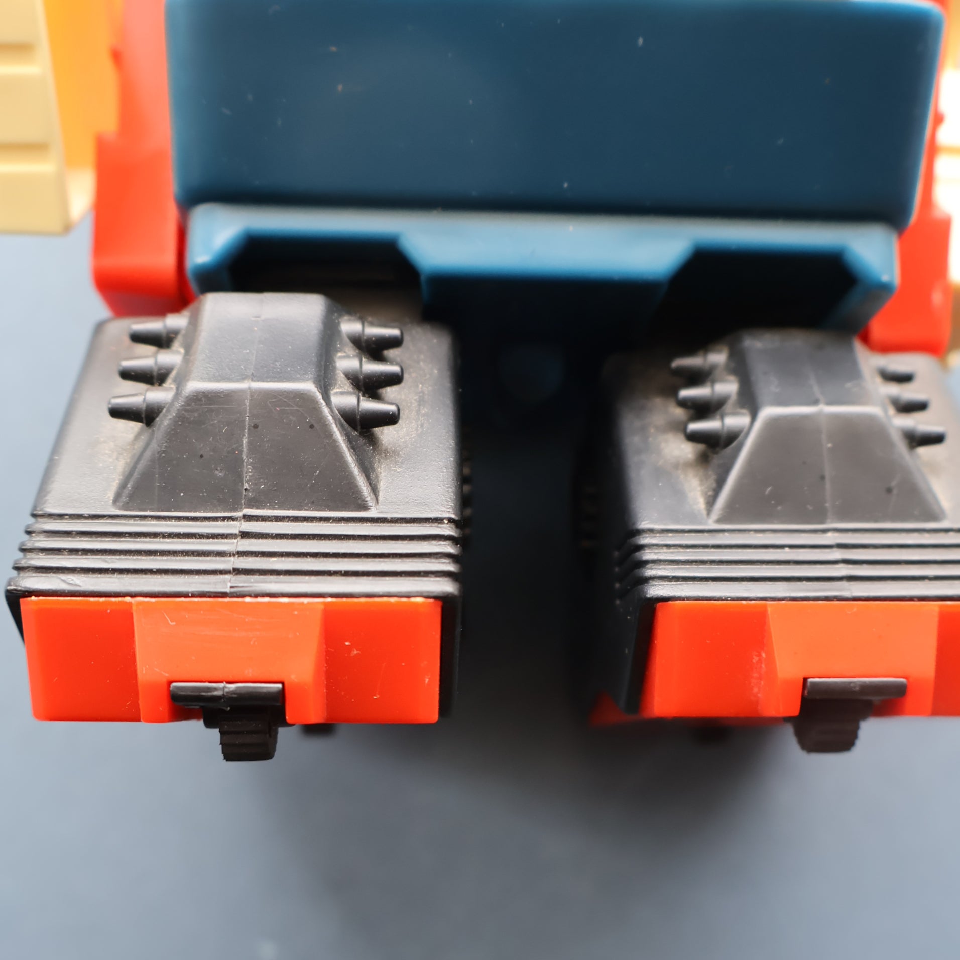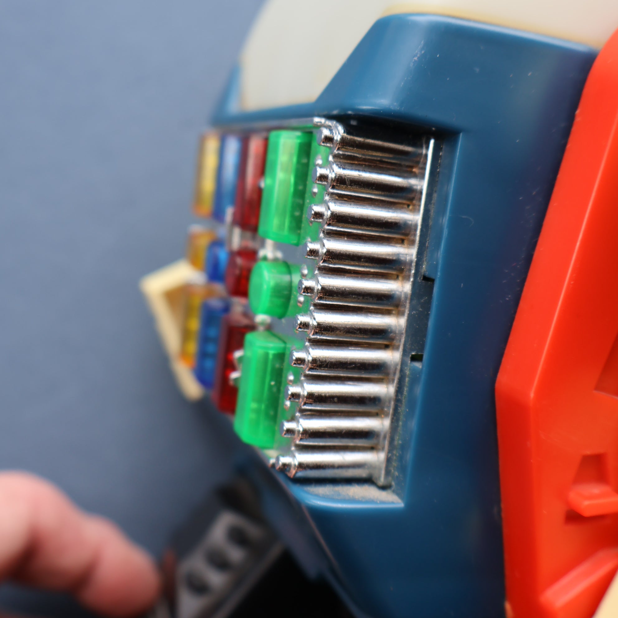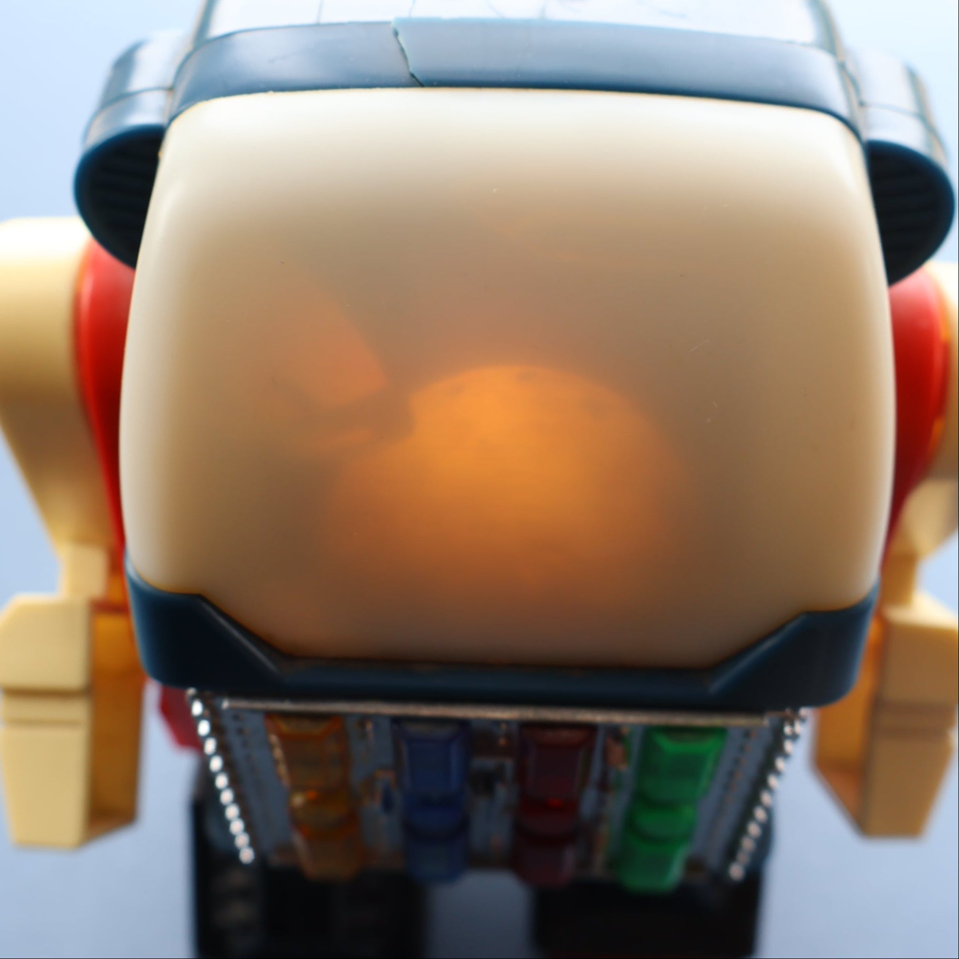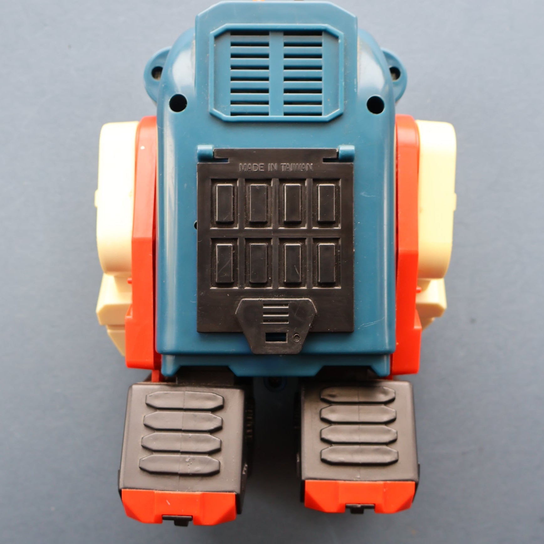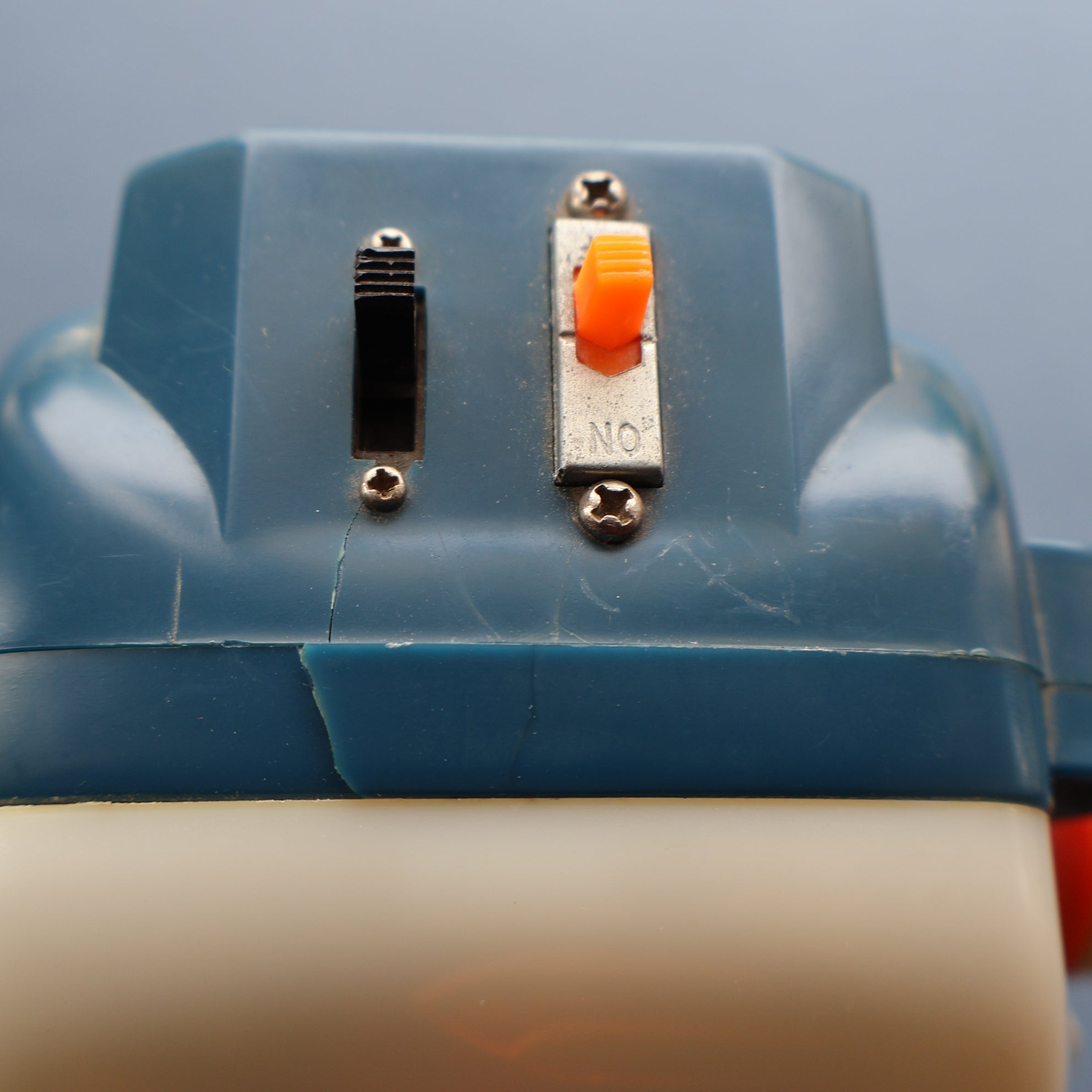 His operating switches are on top of his head - there are some tiny cracks to the plastic casing there - please check that out in my photographs - but this is really the only condition issue with his bodywork. Sadly, he no longer has his box.