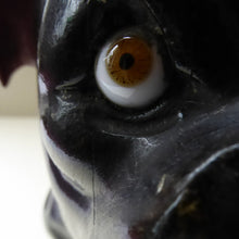 It is finely carved and also has its original glass eyes. There is a hook on the back so that you can hang the brush and holder in your hallway mirror to give yourself a quick brush down on your way out.