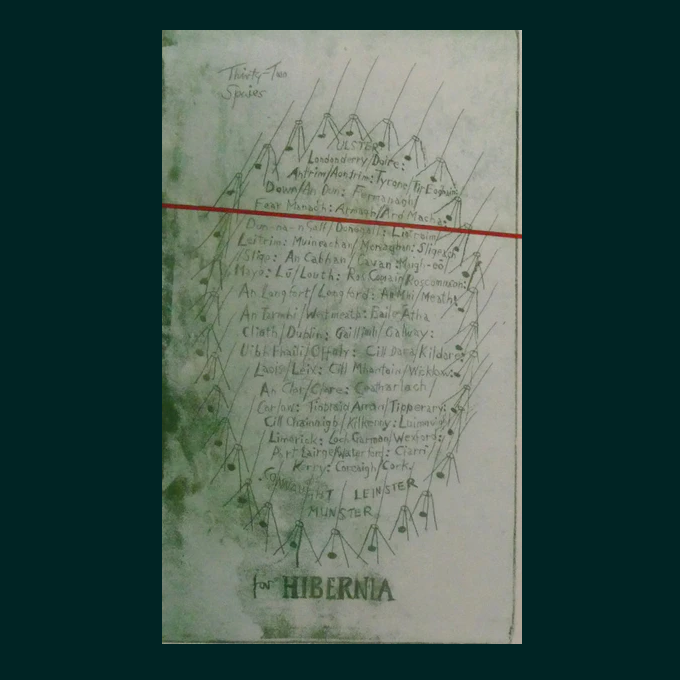 The print features both image and text - the text relating to the 32 Counties of Ireland. Wyllie has applied, by collage, a little red line. This delineates the border between North Ireland and Eire. I like that Wyllie has used green ink to make the image - very appropriate!